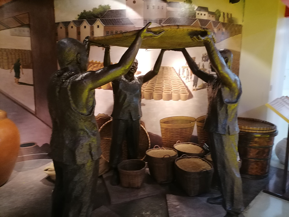 看著這一幅幅古樸的畫(huà)卷,協(xié)會(huì)成員似乎一下子又回到了清朝的那個(gè)時(shí)刻。這里的很多場(chǎng)景都是真實(shí)還原當(dāng)時(shí)的勞動(dòng)場(chǎng)面,對(duì)于醬油的傳統(tǒng)壓榨方法進(jìn)行了情景再現(xiàn)。讓成員們更加印象深刻的去了解古代醬油從黃豆到醬油成品,再到雜貨店出售的全過(guò)程。海天現(xiàn)在的工藝和以前都一樣,只不過(guò)以前是靠人工,現(xiàn)在更多的是靠科技,時(shí)代在進(jìn)步,殊途同歸,醬油的味道更醇厚。