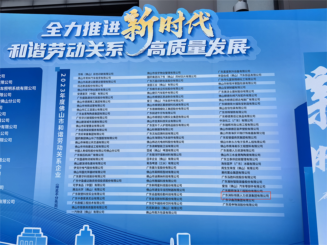 本次頒獎活動,佛山市評選出我司為“佛山市和諧勞動關系”企業(yè),能從眾多的企業(yè)中獲得此榮譽,是政府部門對我司成立11年良好經(jīng)營情況及和諧員工勞動關系的肯定,洲際領英人力資源集團將秉承“服務企業(yè)、解決就業(yè)”的服務宗旨,積極探索勞務派遣、勞務外包新發(fā)展理念,致力推動我國人力資源服務行業(yè)高質(zhì)量發(fā)展。和諧勞動關系,需要企業(yè)和員工雙向奔赴,此次榮譽的獲得,也離不開每一位為洲際領英的員工共同努力。
